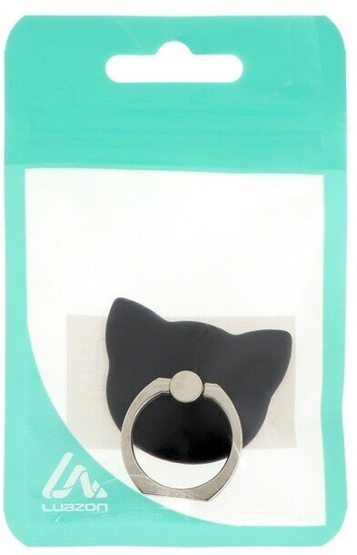 Luazon Home Держатель-подставка с кольцом для телефона LuazON, в форме "Кошки", чёрный