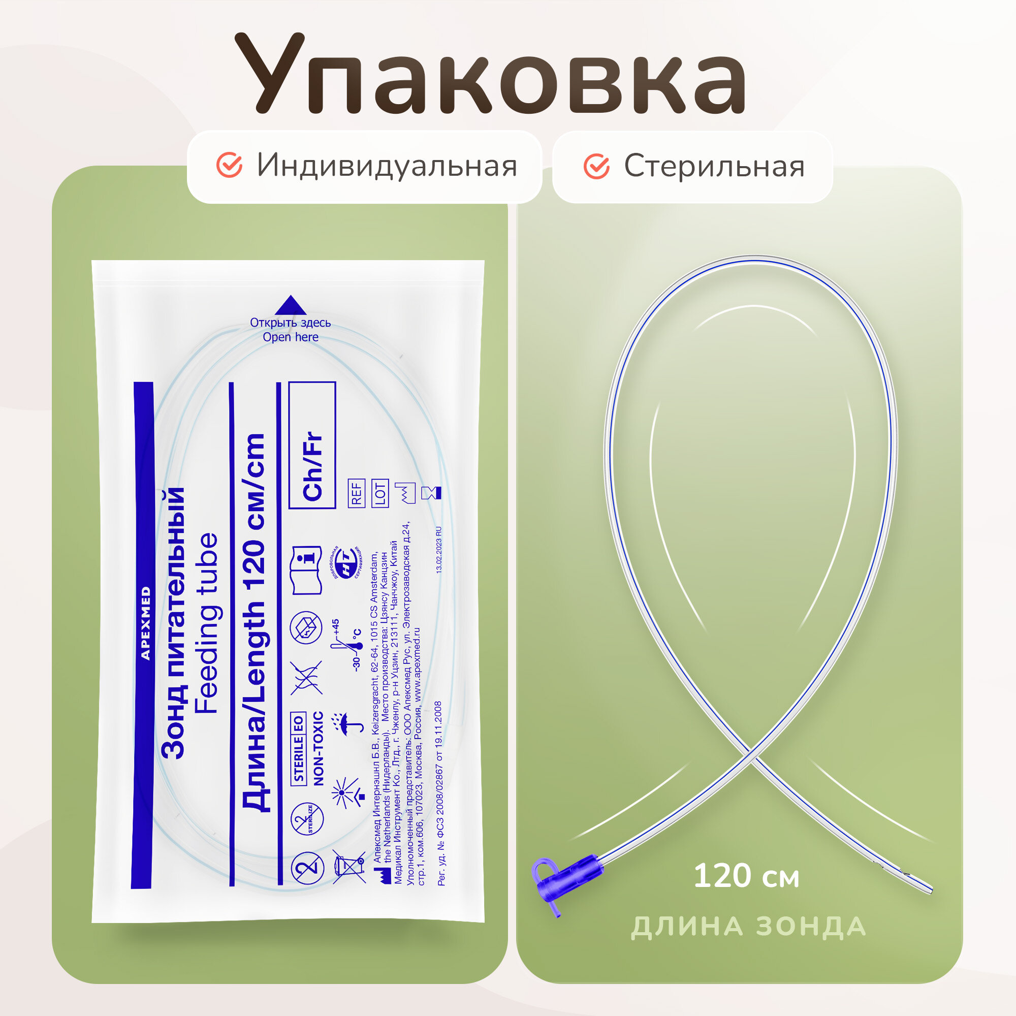 Зонд назогастральный (питательный), Сh/Fr 6, 120 см, 5 штук, Apexmed