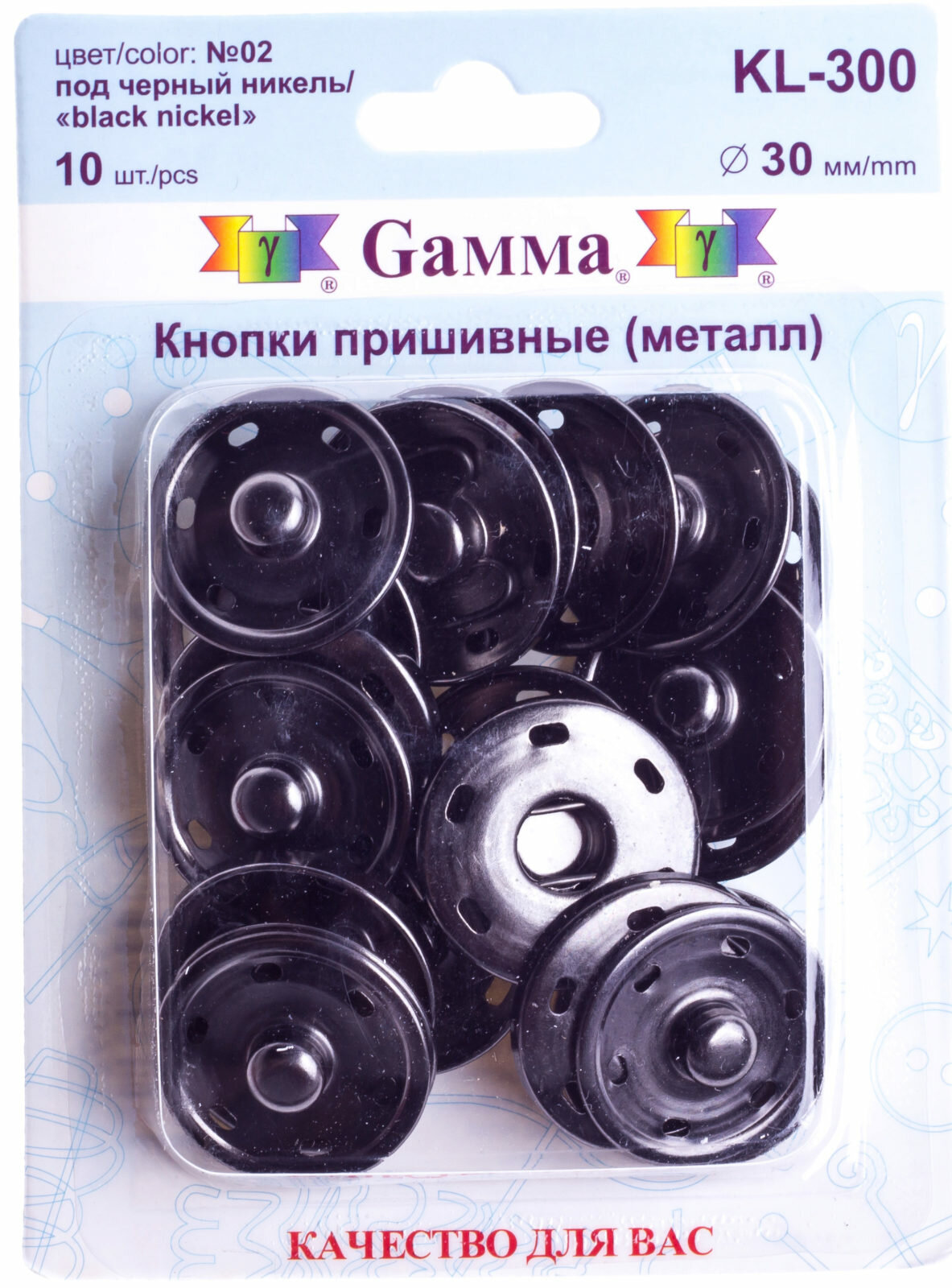 кнопки пришивные KL-300 металл Gamma d 30 мм 10 шт. №02 под черный никель