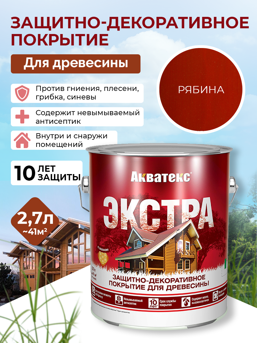 Защитно-декоративная пропитка по дереву Акватекс экстра для внутреннего и наружного применения Рябина 2,7л