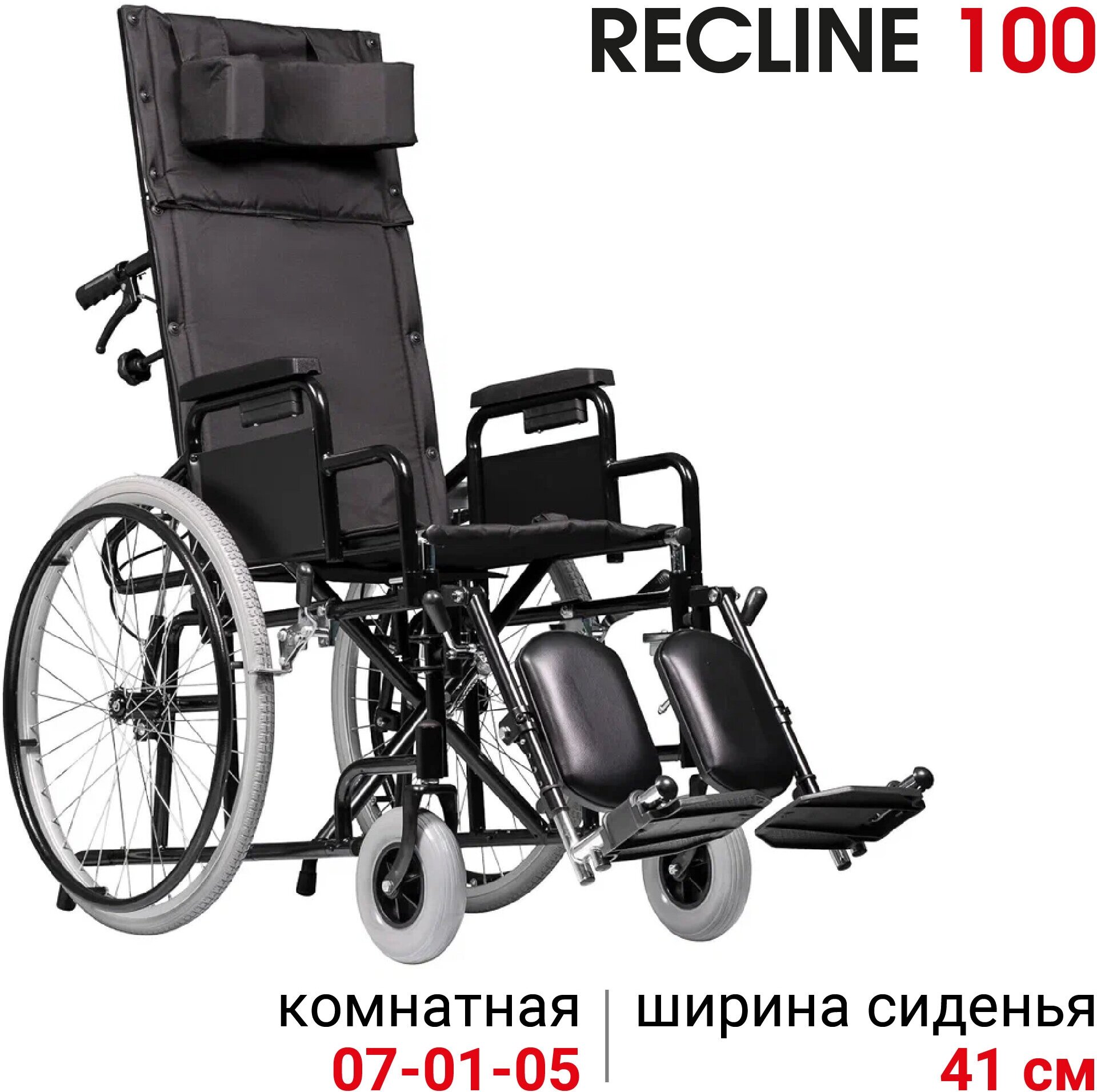 Кресло-коляска инвалидная комнатная механическая с подголовником Ortonica Base 155/Recline 100 ширина сиденья 41 см литые колеса Код 7-01-05, 7-01-01