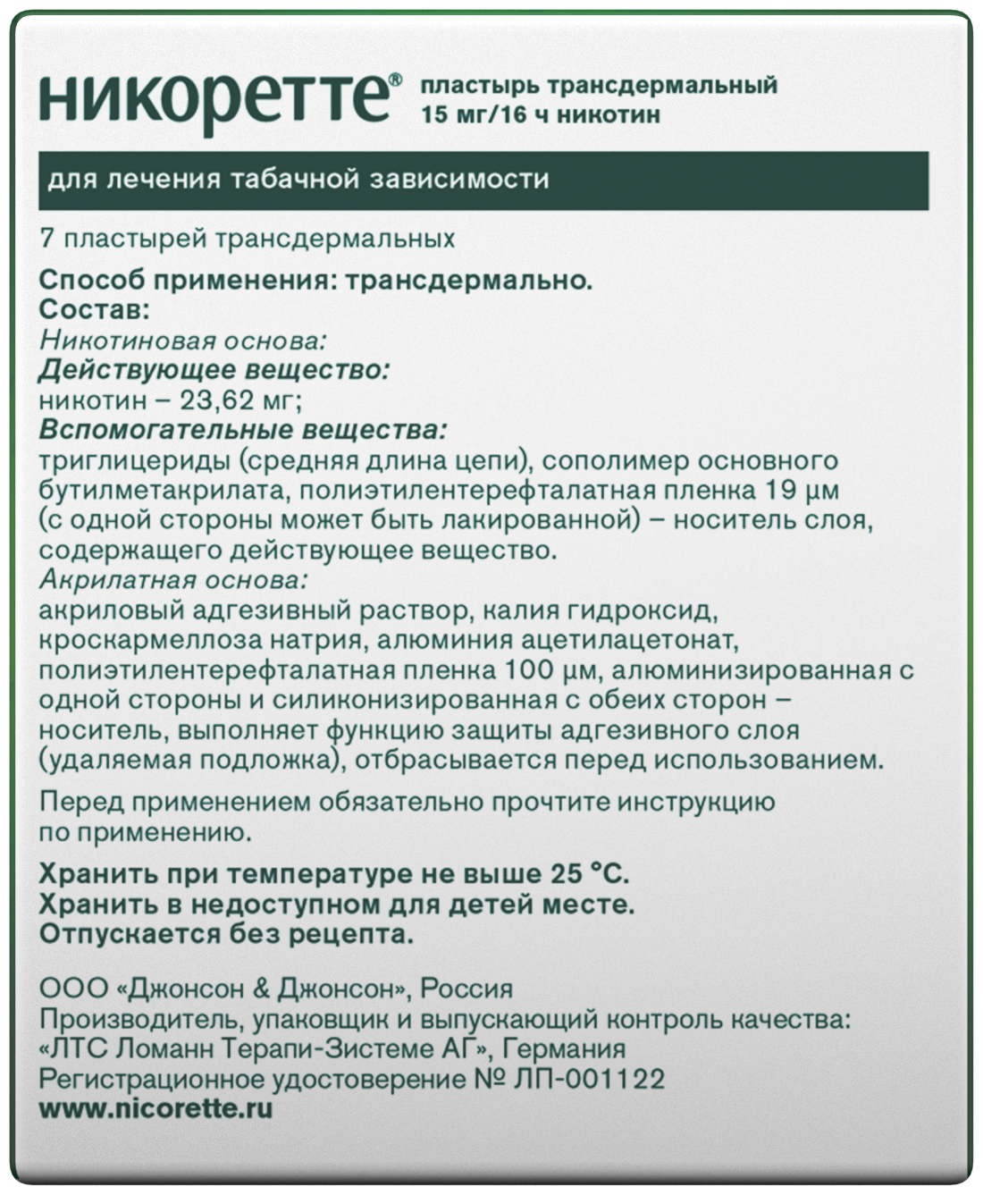 никоретте пластырь 15 мг/16 ч 7 второй этап