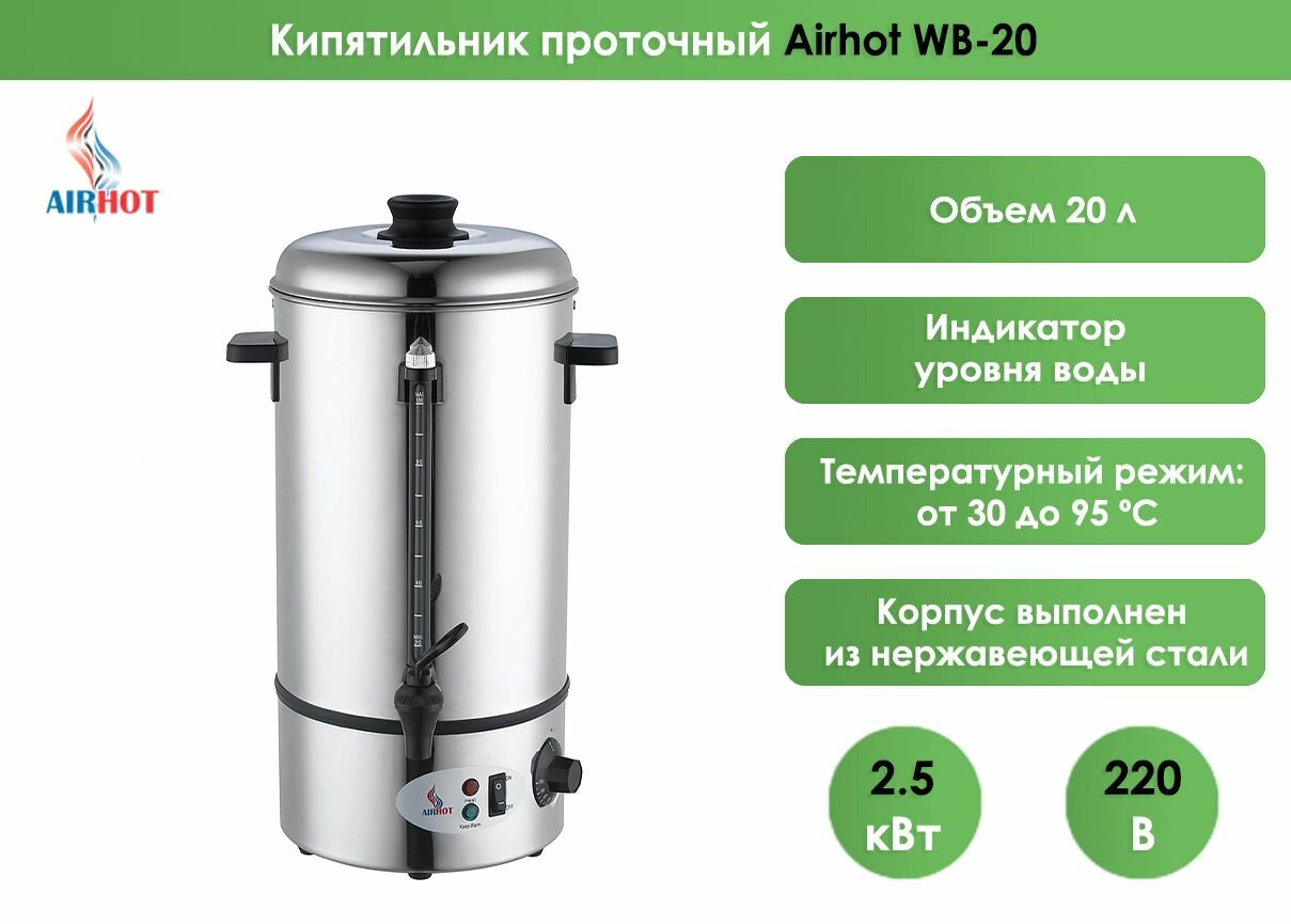 Электрокипятильник AIRHOT WB-20, 20л, нерж. сталь, 2,5 кВт
