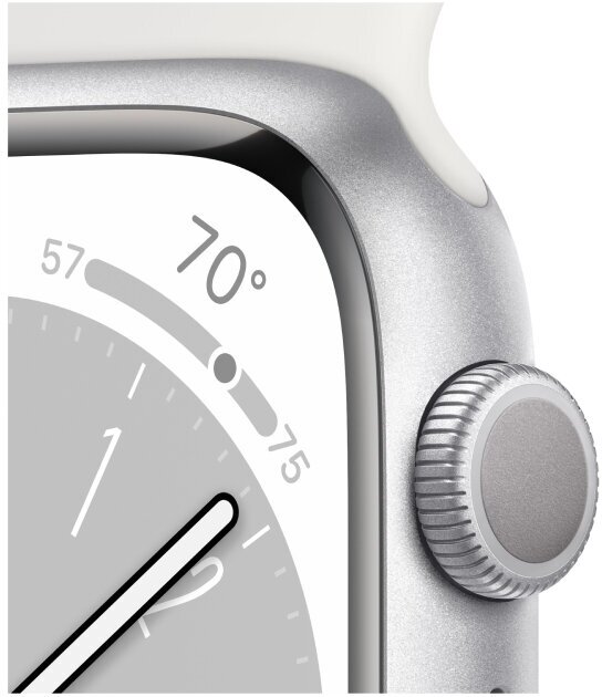 Умные часы Apple Watch Series 8 A2771 45мм серебристый, ремень белый, браслет M/L (MP6Q3LL/A)
