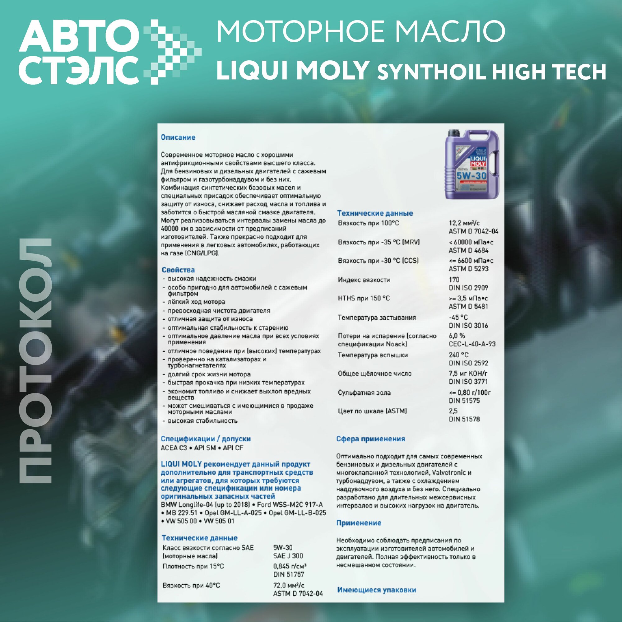 Ниже Вы можете прочитать отзывы на Моторное масло Liqui Moly Synthoil High Tech 5W30 синтетическое 4л, ознакомится с подробными характеристиками, посмотреть интересные обзоры и фотографии на Моторное масло Liqui Moly Synthoil High Tech 5W30 синтетическое 4л.