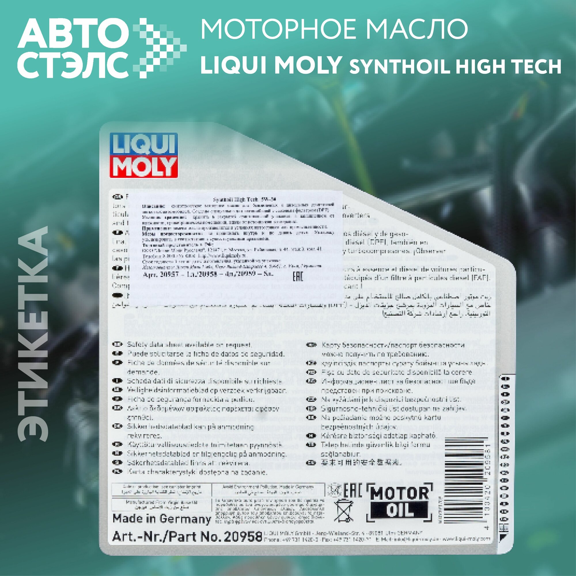 СохранитьМоторное масло Liqui Moly Synthoil High Tech 5W30 синтетическое 4л интересное: