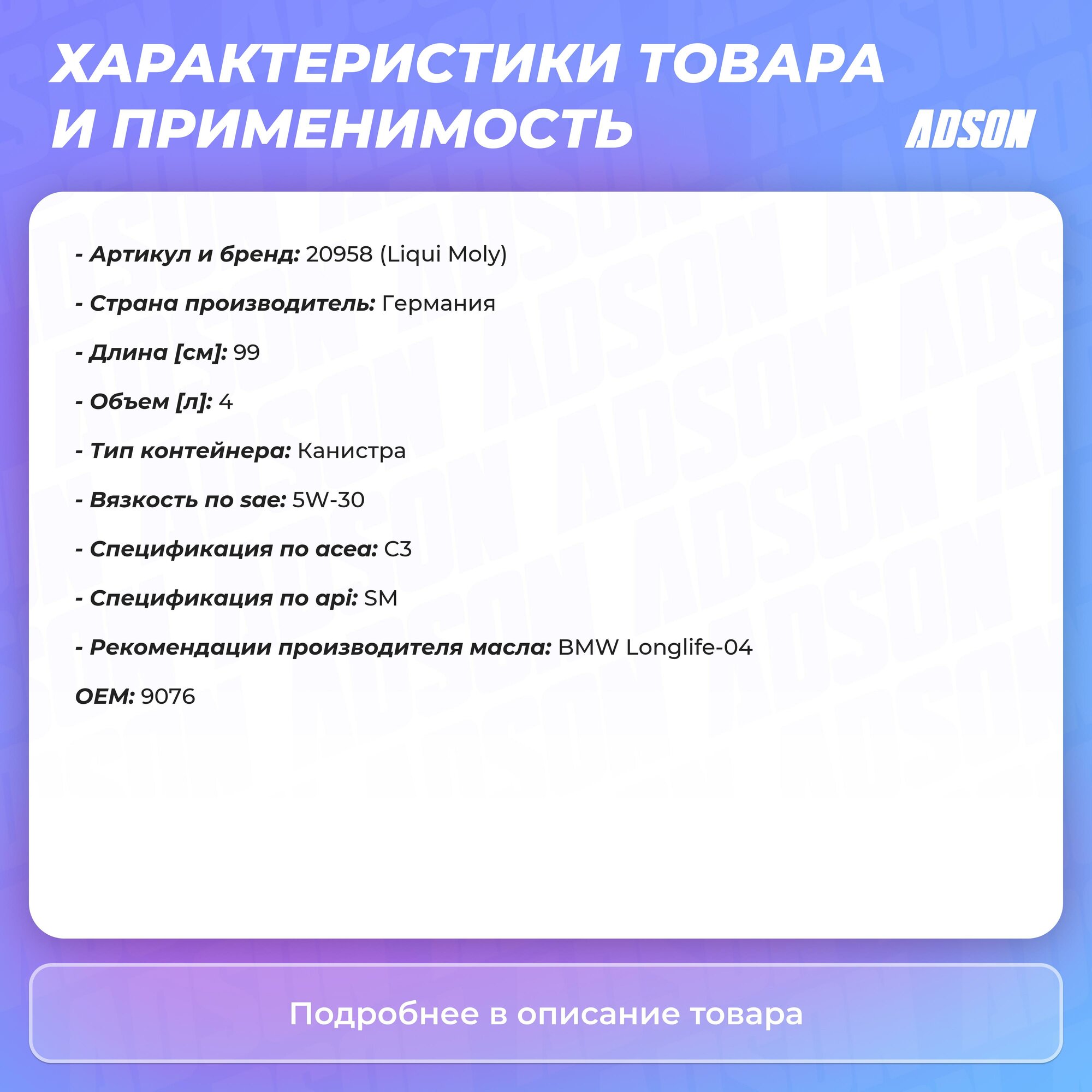 Замена 9076 Масло Моторное Синт. Synthoil High Tech 5w-30 4л Liqui moly20958