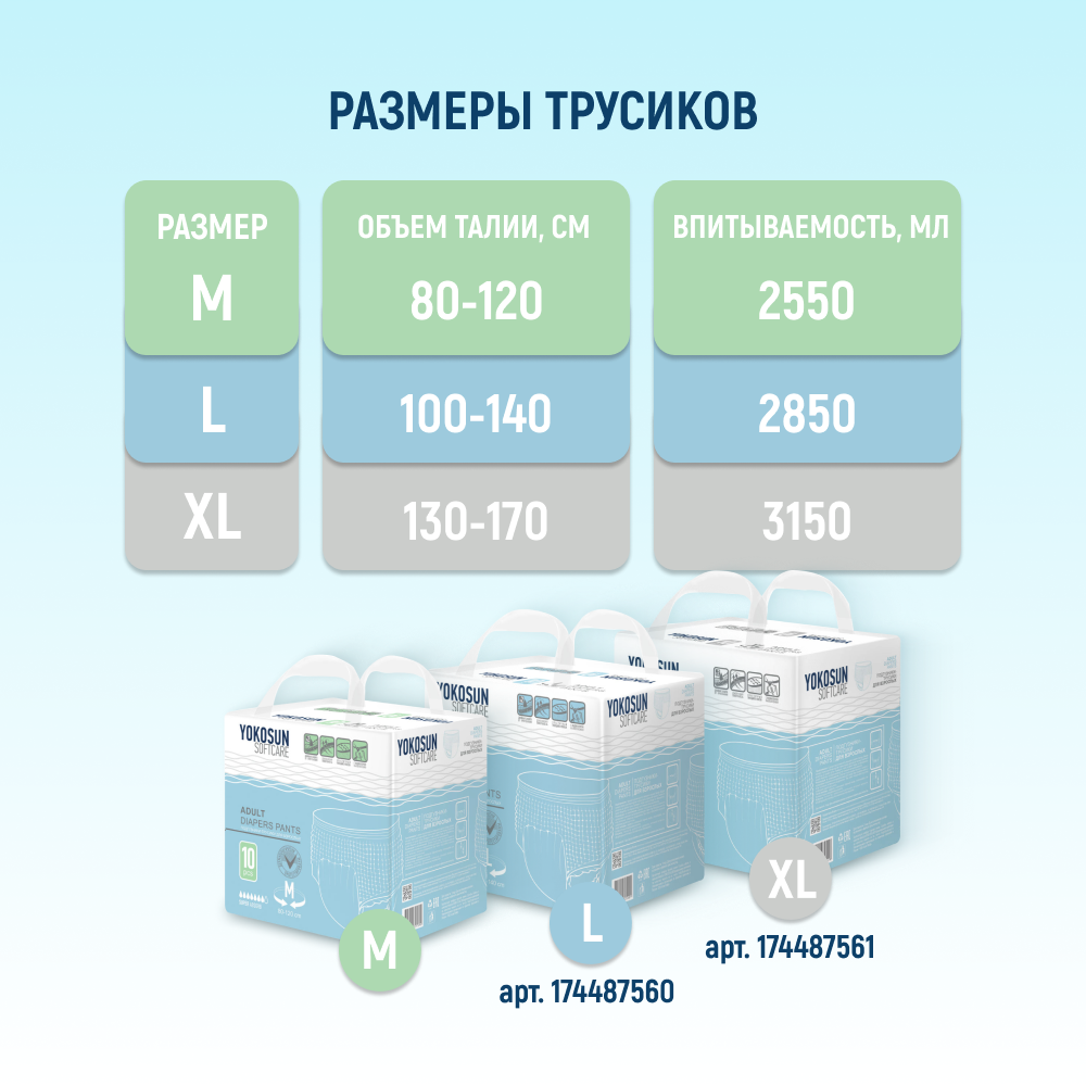 Подгузники-трусики для взрослых YokoSun, размер М, 10 шт., упак