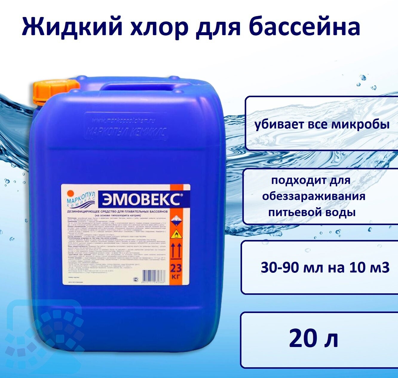Маркопул Кемиклс Эмовекс, 20л канистра, жидкий хлор для дезинфекции воды М55 .