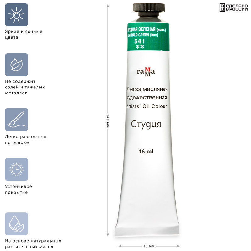 Купить Гамма Краска масляная художественная "Студия", туба №10, 46 мл, изумрудная зелёная (имитация), № 541