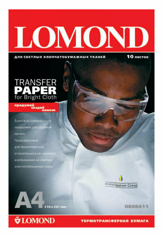 Бумага термотрансферная для светлых тканей, струйная печать, A4, 10 листов, Lomond 0808411