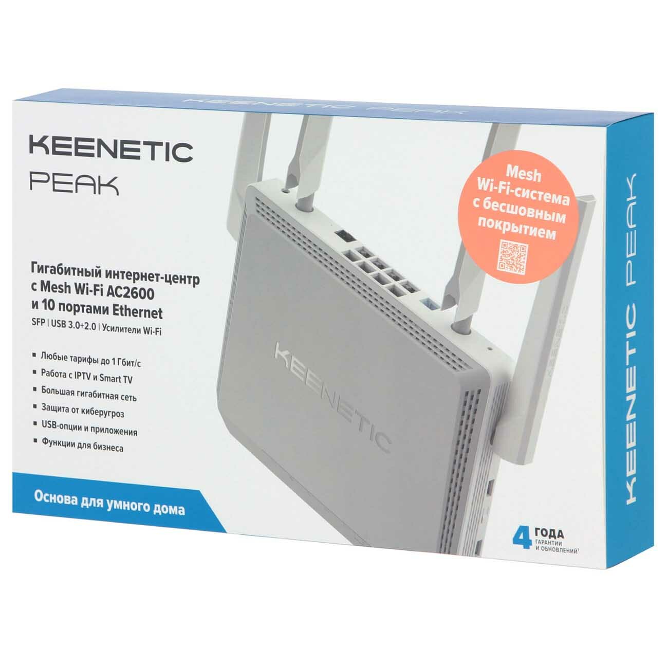 Интернет-центр Keenetic Peak (KN-2710) двухдиапазонный Mesh Wi-Fi AC2600, двухъядерный ARM-процессор, 10-портовый коммутатор Smart Pro, SFP, USB 3.0, интересное: