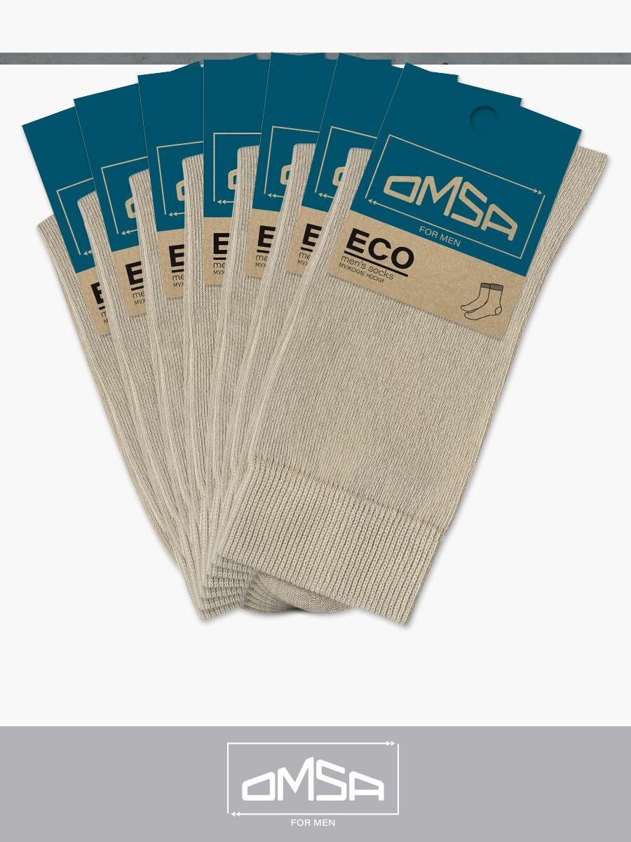 Носки мужские OMSA ECO 401, высокие, комплект 7 шт, Цвет Grigio Chiaro, Размер 45-47 (29-31), уп."Крафт"