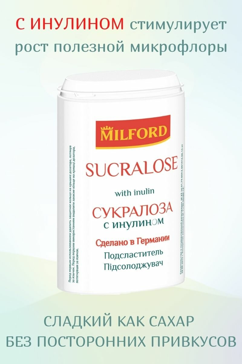 Заменитель сахара MILFORD Сукралоза с инулином, 370 таблеток, пластиковая баночка с дозатором, 941201 интересное: