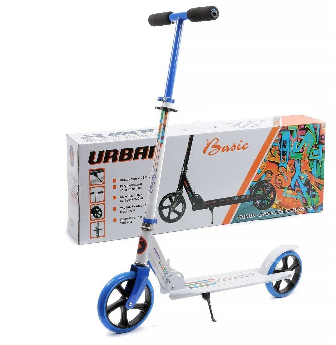 Городской самокат Slider URBAN BASIC, белый/голубой