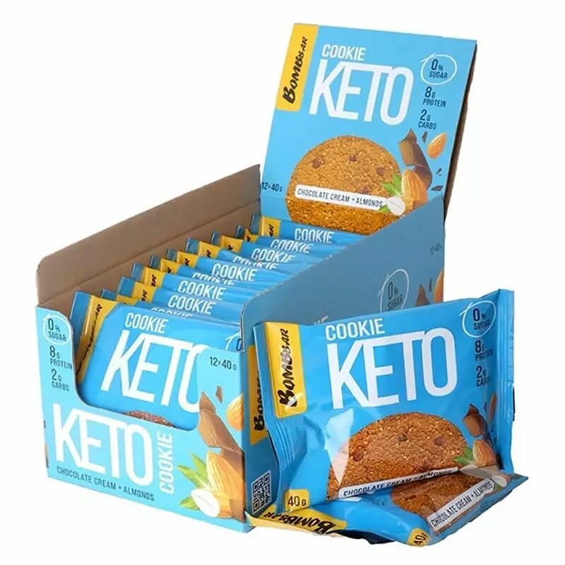 Bombbar, Печенье Keto Cookie, упаковка 12шт по 40г (Шоколадный крем и миндаль)