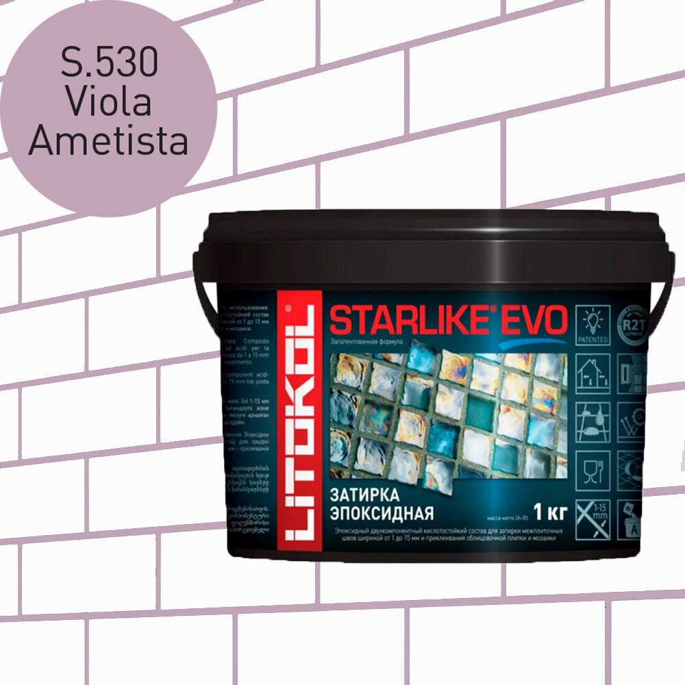 Купить Затирка для плитки эпоксидная LITOKOL STARLIKE EVO (старлайк ЭВО) S.530 VIOLA AMETISTA, 1кг