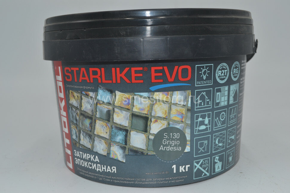 Купить Затирка для плитки эпоксидная LITOKOL STARLIKE EVO (старлайк ЭВО) S.130 GRIGIO ARDESIA, 1кг
