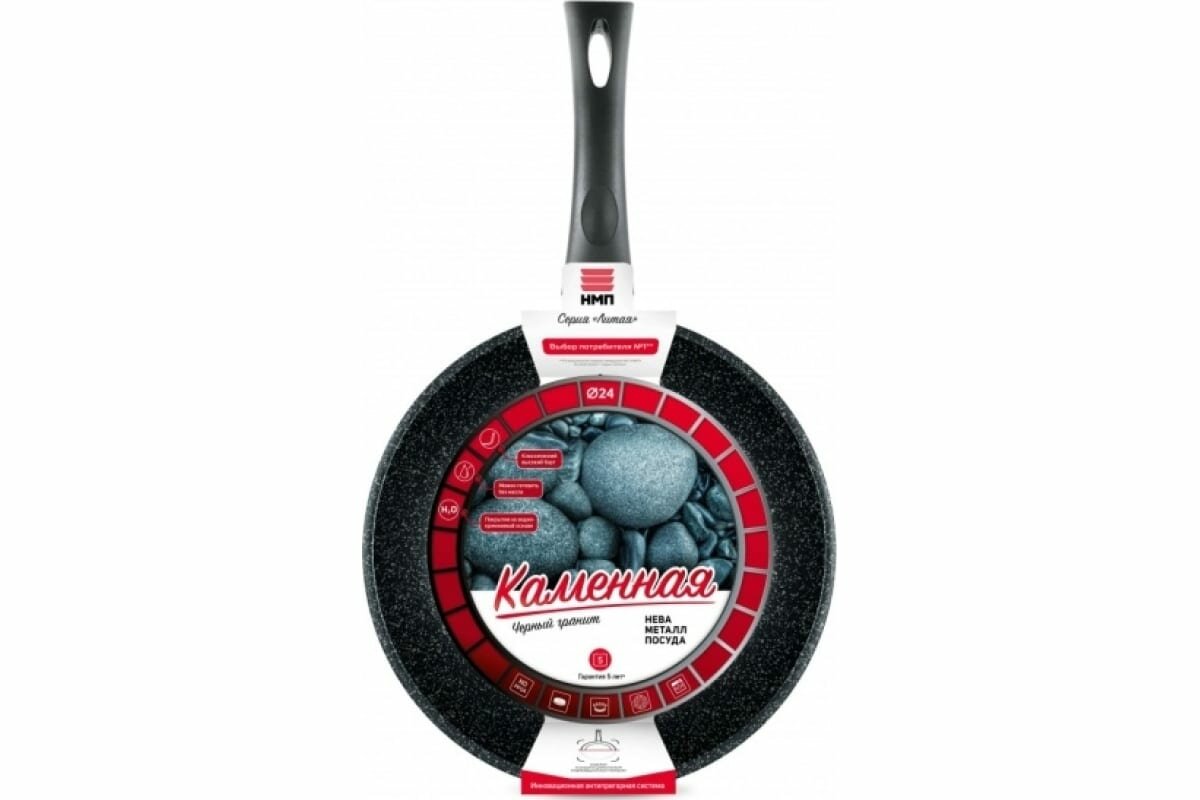 Сковорода 24 Нева Металл Посуда НМП "Каменная" Чёрный гранит н/р 18124