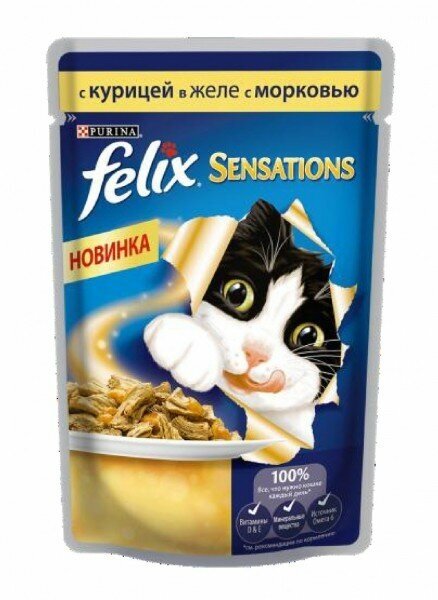 FELIX SENSATIONS для взрослых кошек с курицей в желе с морковью (75 гр х 26 шт)