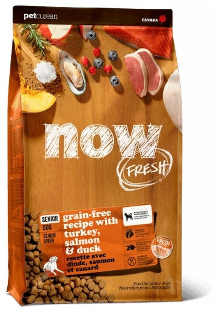Корм Now Fresh Turkey, Salmon & Duck (беззерновой) для собак, с индейкой, лососем и уткой, 9.98 кг