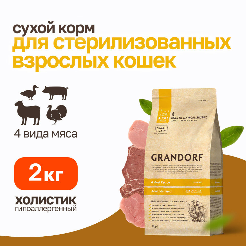 Корм сухой GRANDORF 4 вида мяса для стерилизованных кошек, 2 кг