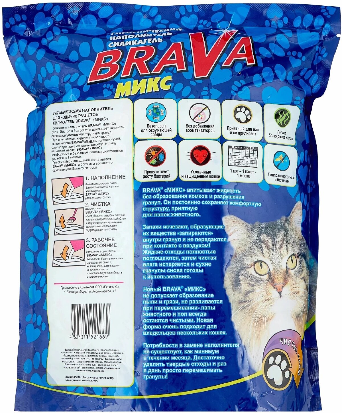 Наполнитель для кошачьего туалета Brava 3,8 литров Силикагель Микс/ Брава Наполнитель