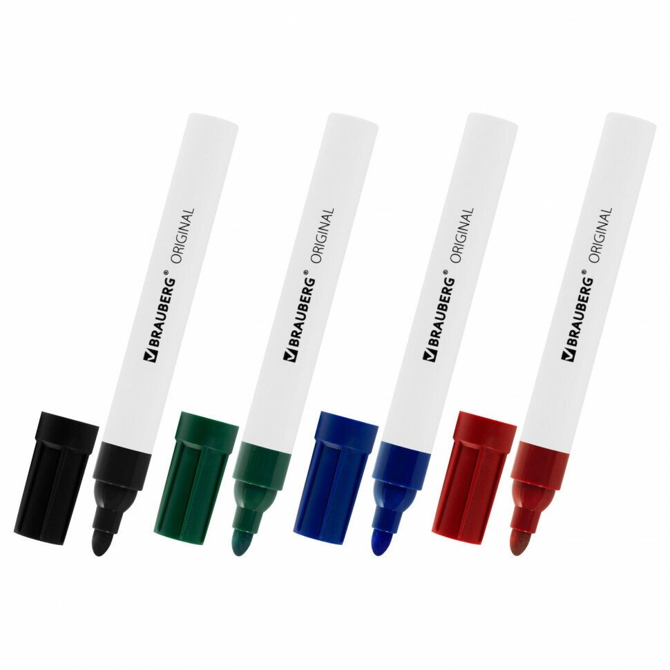 Маркеры стираемые для белой доски набор 4 цвета, BRAUBERG "ORIGINAL", 3 мм, 152120, 1 шт