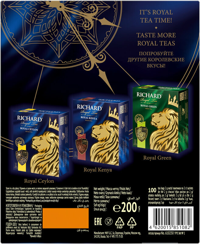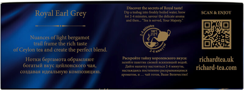 Чай RICHARD "Royal Earl Grey" черный цейлонский с бергамотом, 100 пакетиков по 2 г, ш/к 51082