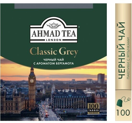 2425 Чай "Ahmad Tea", Чай Классик Грей, черный, пакетики с ярлычками, 100х1,9г