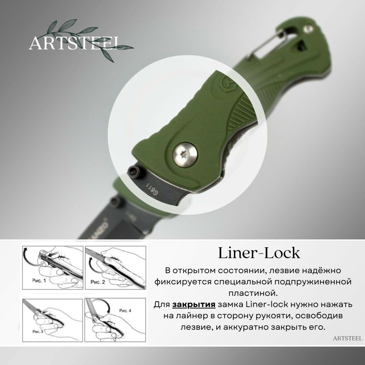 Складной нож GANZO G611g, 190мм, хаки / черный, коробка картонная