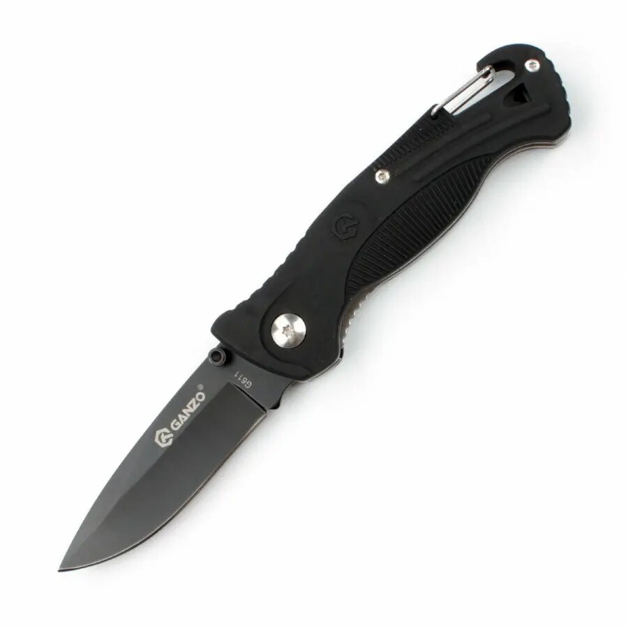 Нож складной "Ganzo" с зажимом и встроенным свистком, дл.клинка 75 мм, сталь 420С,цв.чёрный G611-BK