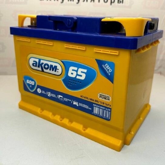 AKOM 4607034730727 Аккумуляторная батарея АКОМ 6СТ-65 Евро
