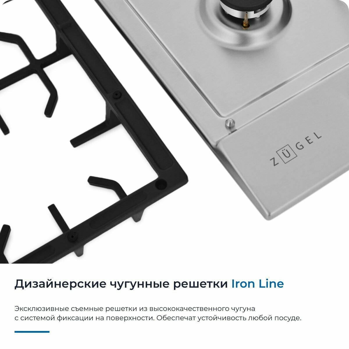 Встраиваемая газовая варочная панель Zugel ZGH451X, стальная интересное: