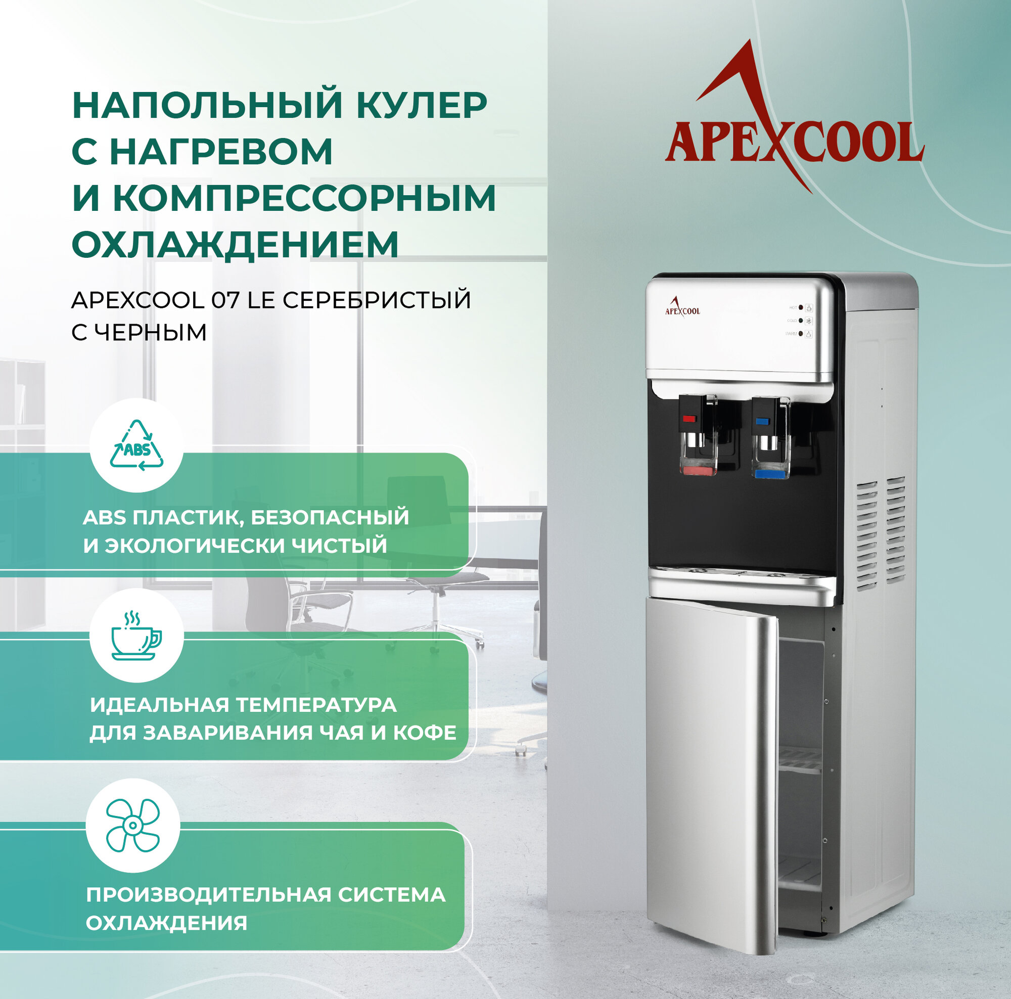 Ниже Вы можете прочитать отзывы на Кулер для воды напольный APEXCOOL 07LE серебристый со шкафчиком, ознакомится с подробными характеристиками, посмотреть интересные обзоры и фотографии на Кулер для воды напольный APEXCOOL 07LE серебристый со шкафчиком.