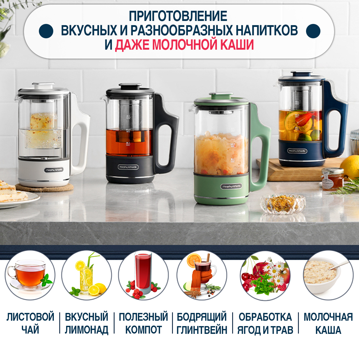 Электрический фито чайник Morphy Richards с выбором температуры Tea Maker, белый