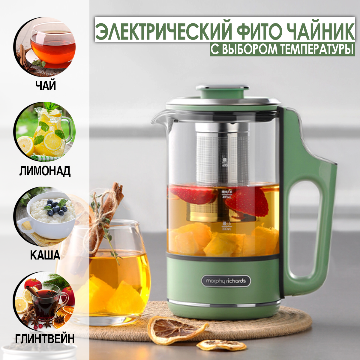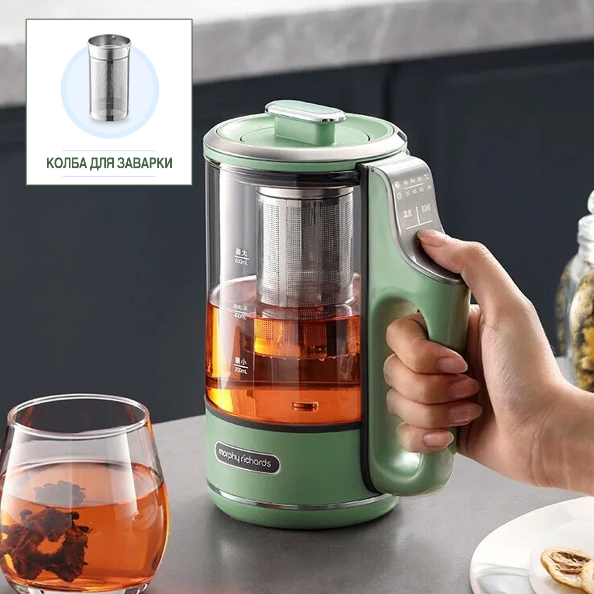 Электрический заварочный фито чайник Morphy Richards с выбором температуры Tea Maker, мятный