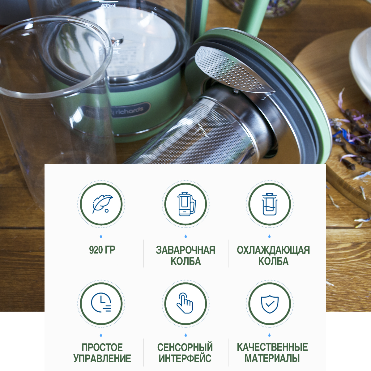 СохранитьЧайник Morphy Richards Tea Maker MR6086M мятный интересное: