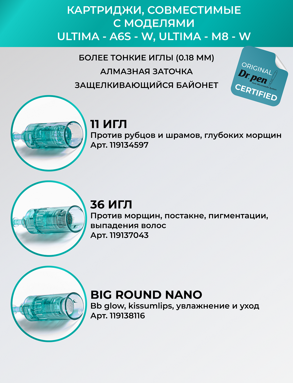 Beauty Star Ultima Dr. pen M8S Дерма-ручка для роста волос, 12 18 36pin Nano