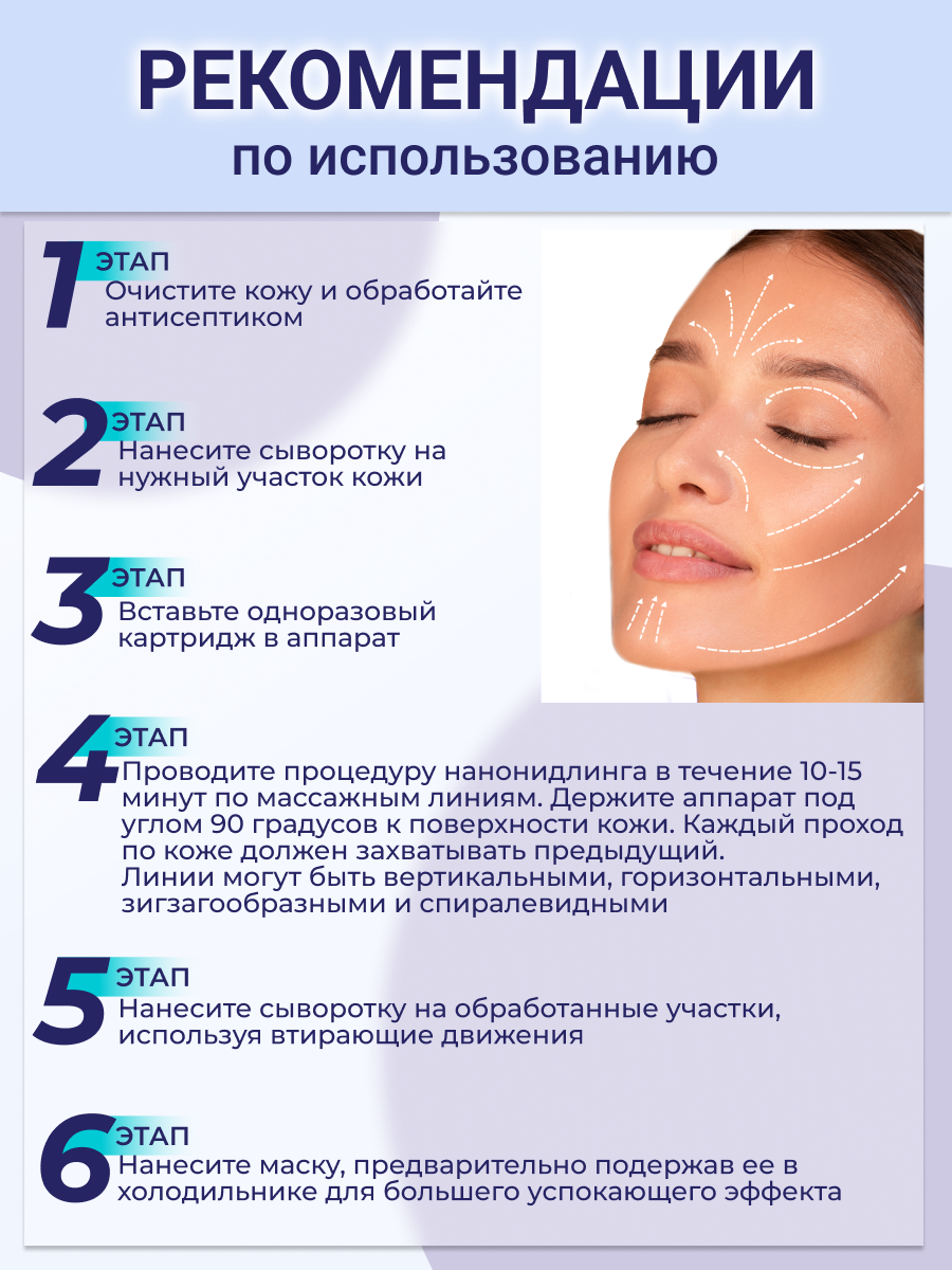 | Эффект | осветление пигментных пятен / подтяжка кожи / разглаживание морщин / ровный цвет лица / сужение пор / удаление рубцов и шрамов / улучшение кровоснабжения |