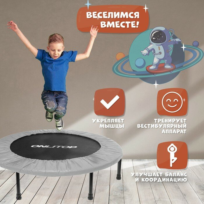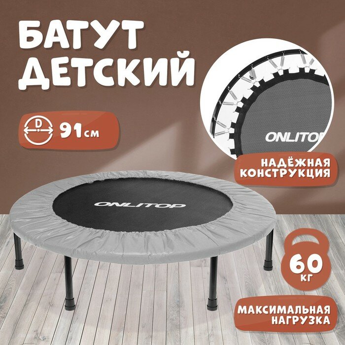 Батут ONLITOP, диаметр 91 см, максимально допустимый вес 60 кг, цвет серый