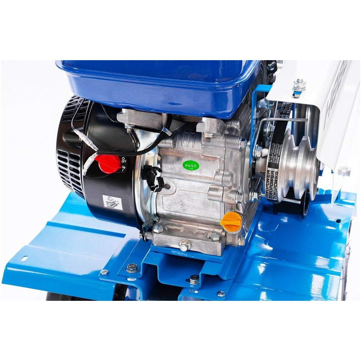 Достаточно мощный. Распахал 3 сотки с состояния целины до посадки картошки. Очень доволен. Переключение передач рычагом абсолютно не мешает. |
