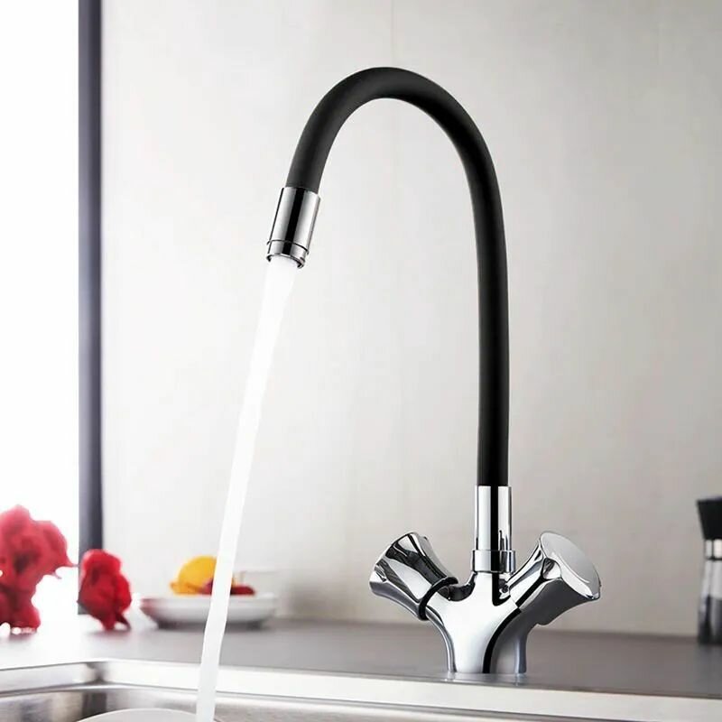 Смеситель для кухни двухвентильный Accoona A4883F, излив силиконовый черный