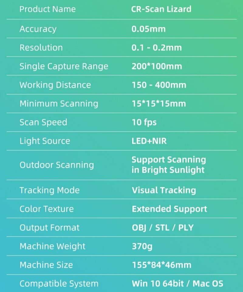 3D сканер Creality CR-Scan Lizard Luxury 4008050029 интересное: