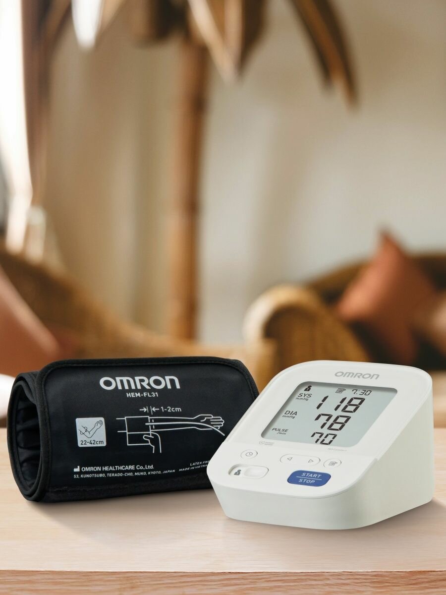 Автоматический тонометр OMRON M3 Comfort на плечо с умной манжетой Intelli Wrap Cuff (22-42 см) и адаптером, индикатор движения, расчет среднего значения