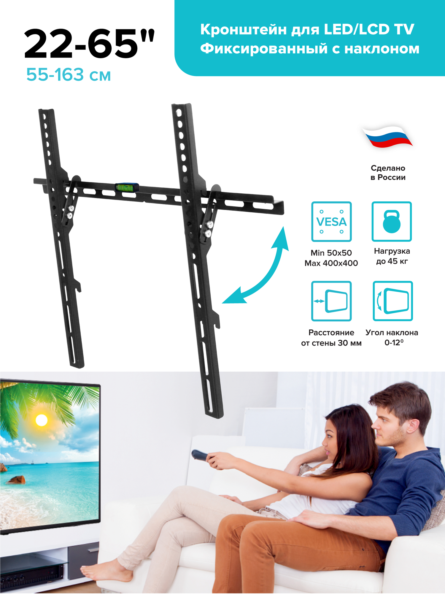 Купить Кронштейн для ТВ Фиксированный с наклоном 22-65" черный АС-4-2/Absolute Comfort. Крепление (держатель) для тв монитора на стену
