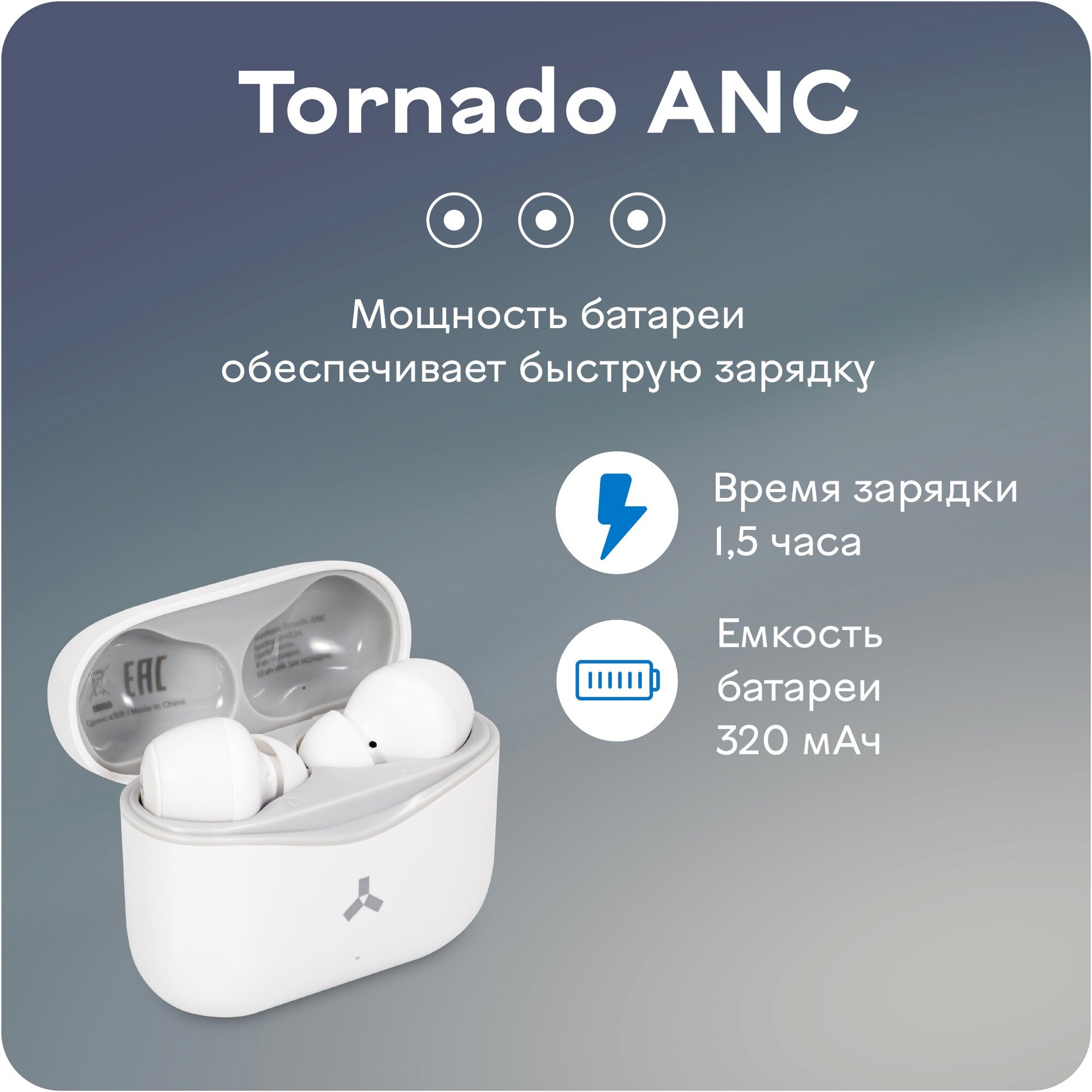 Наушники Accesstyle Tornado Anc, шумоподавление, до 6 часов, 320 мАч, белые accesstyle 9544463 .