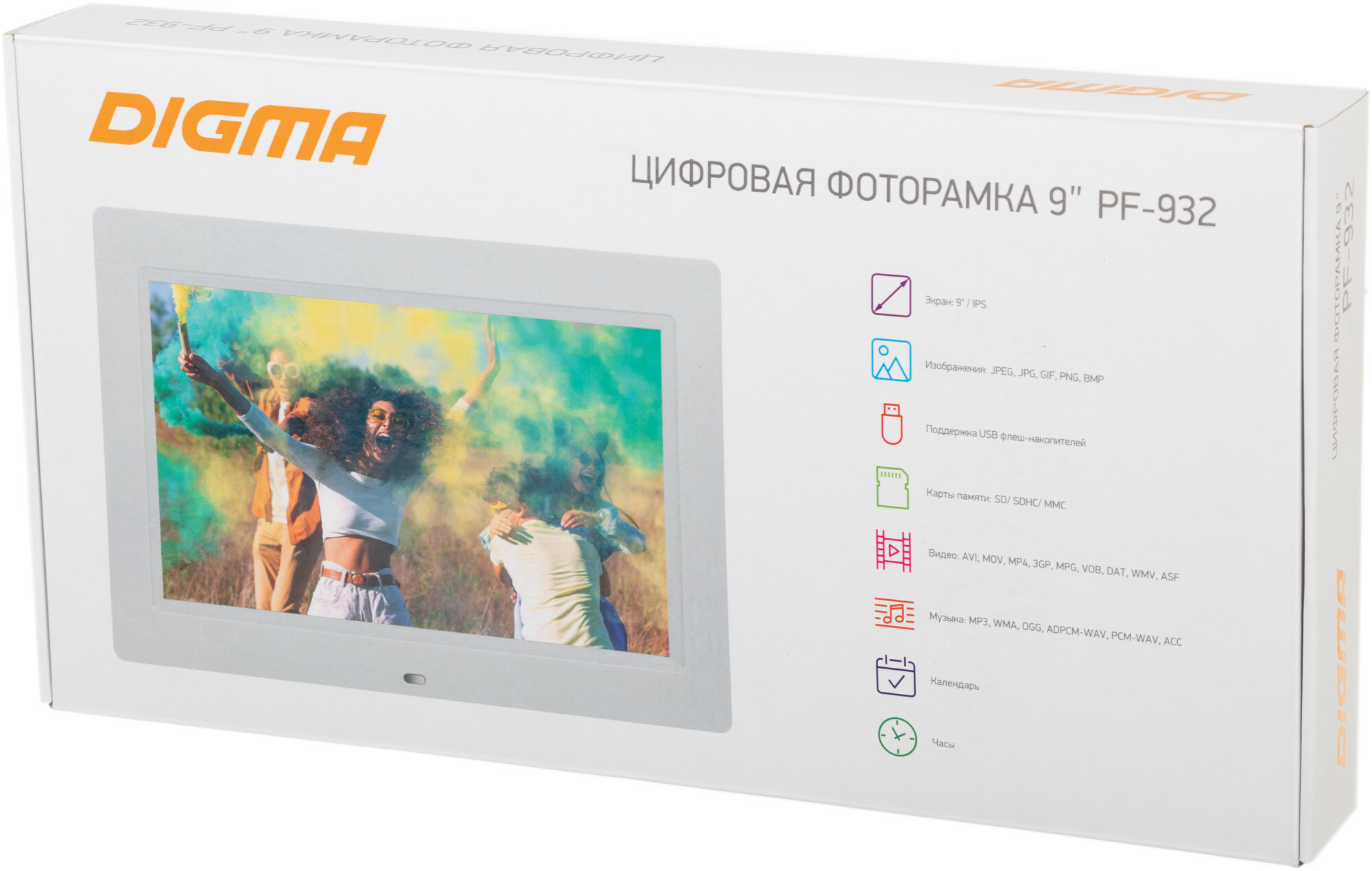 Купить Фоторамка Digma 9" PF-932 IPS 1024x600 белый пластик ПДУ Видео
