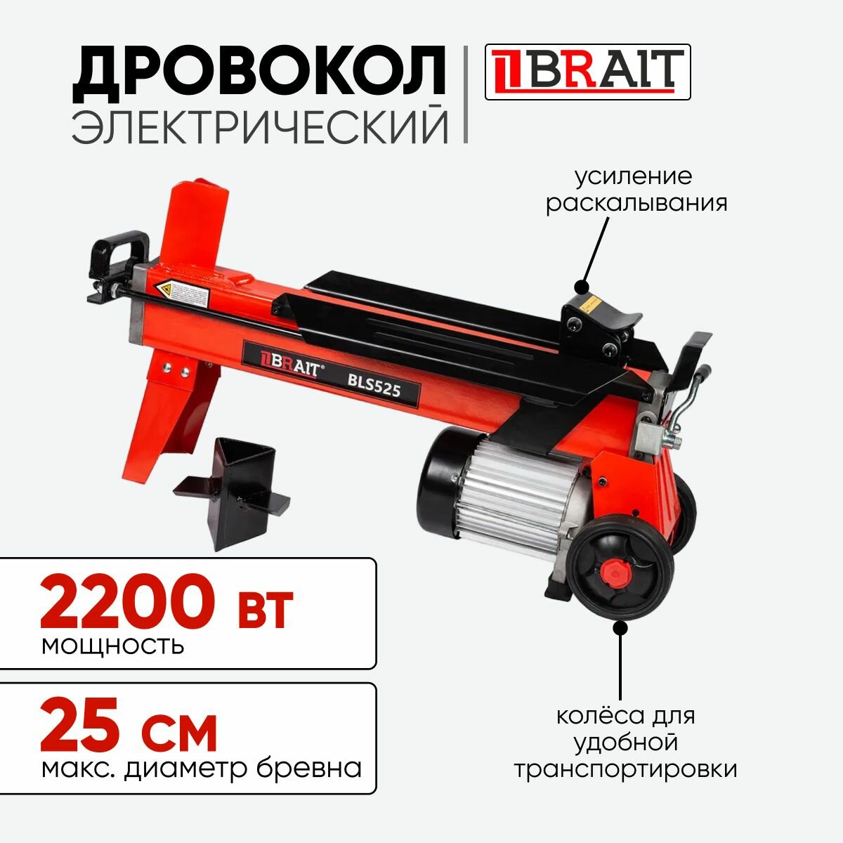 Дровокол электрический гидравлический BRAIT BLS525 /2200 Вт для колки и заготовки дров