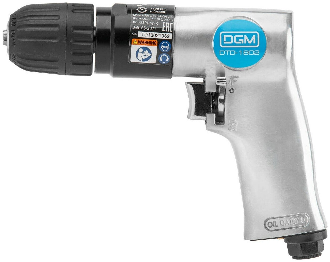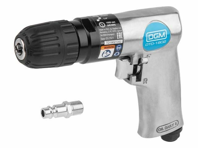 Пневмодрель с реверсом DGM DTD-1802 (Быстрозажим.патрон 3/8''-24 UNF, 255 л/мин, 1800 об/мин, дерево/металл: 20/10 мм,) (DTD-1802)